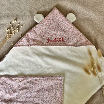 Douce et pratique, cette cape de bain enveloppe bébé après le bain pour le garder au chaud et au sec.