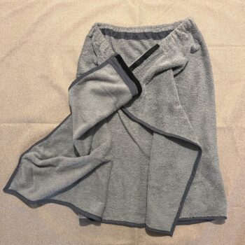 Cette serviette de bain s’adapte à toutes les morphologies.
